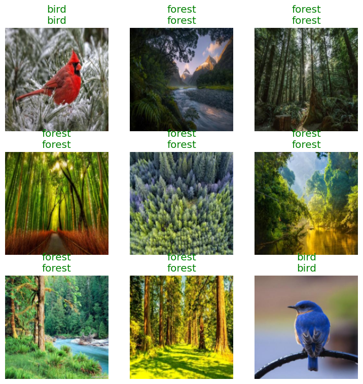 We can display a sample of the validation dataset with predicted label and true labels. As you can see below, the fine-tuned model predicts all images with the correct labels for data it didn’t see during training.