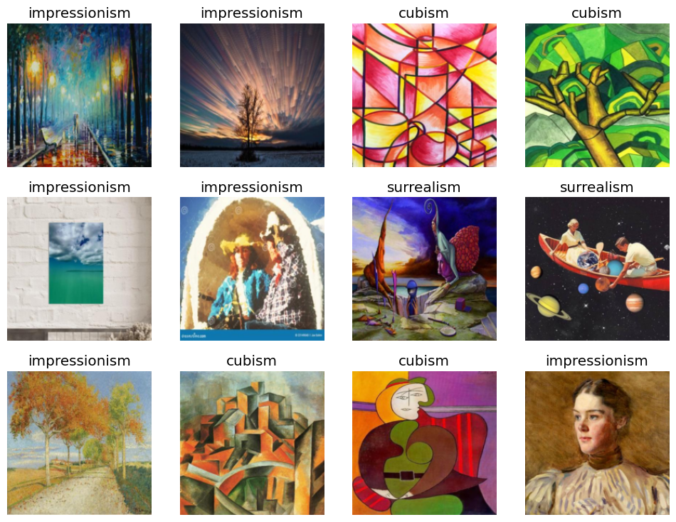).dataloaders(path, bs=32)And this is a sample of our paintings dataset.