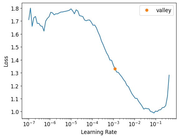 learn.lr_find()SuggestedLRs(valley=0.0012022644514217973)